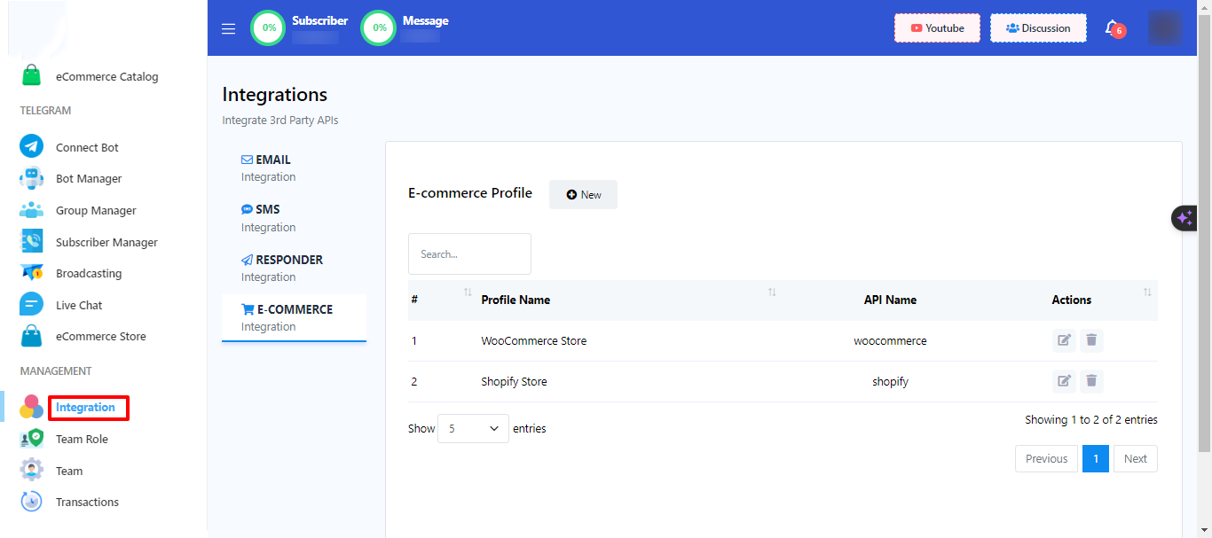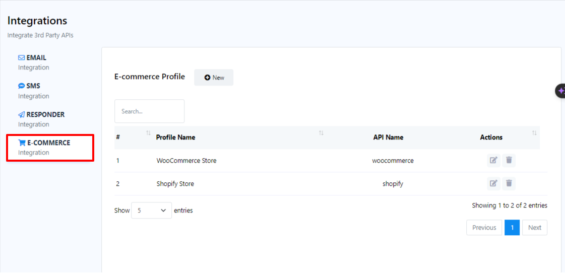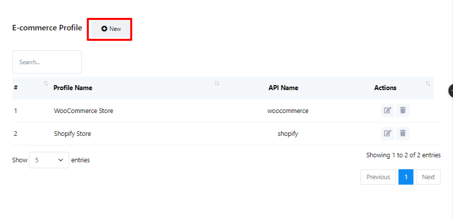 - لإعداد ملف تعريف مزود خدمة المستجيب الجديد، انقر فوق الزر "جديد" بجوار ملف تعريف التجارة الإلكترونية.