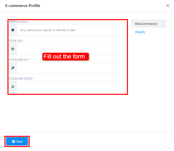 - الآن، تابع إكمال النموذج لإنشاء ملف تعريف ووكومرس الخاص بك. يمكن العثور على المعلومات اللازمة لملء هذا النموذج في حساب ووكومرس الخاص بك.