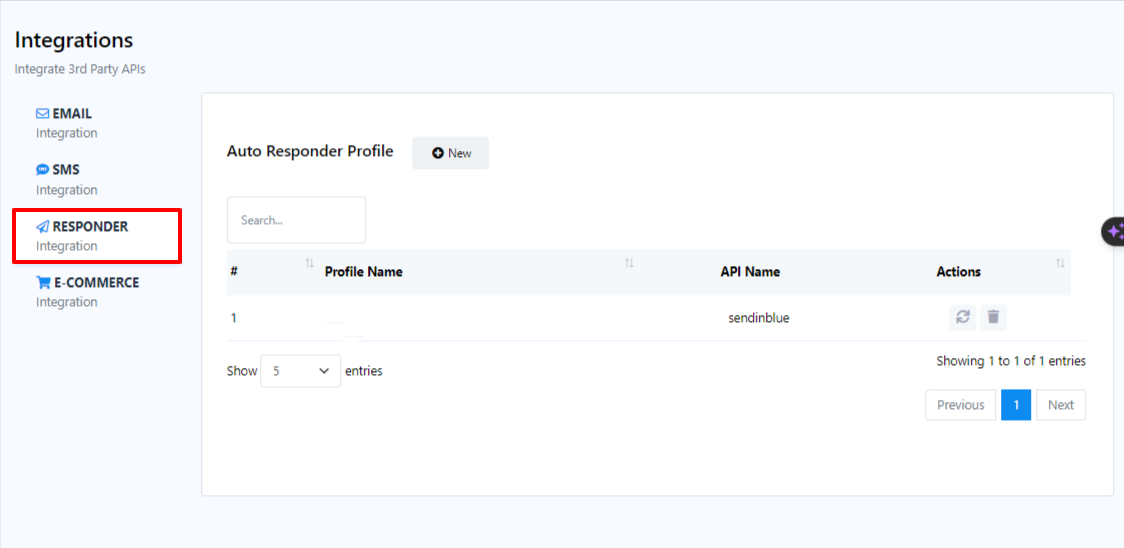 - لإعداد ملف تعريف مزود خدمة المستجيب الجديد، انقر فوق الزر "جديد" بجوار ملف تعريف المستجيب.