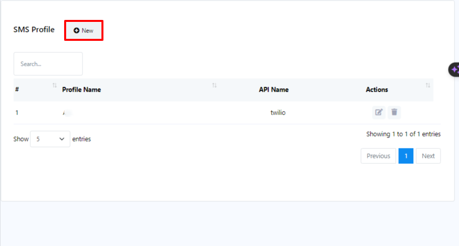 - لإعداد ملف تعريف جديد لمزود خدمة الرسائل القصيرة، انقر فوق الزر "جديد" بجوار ملف تعريف الرسائل القصيرة.