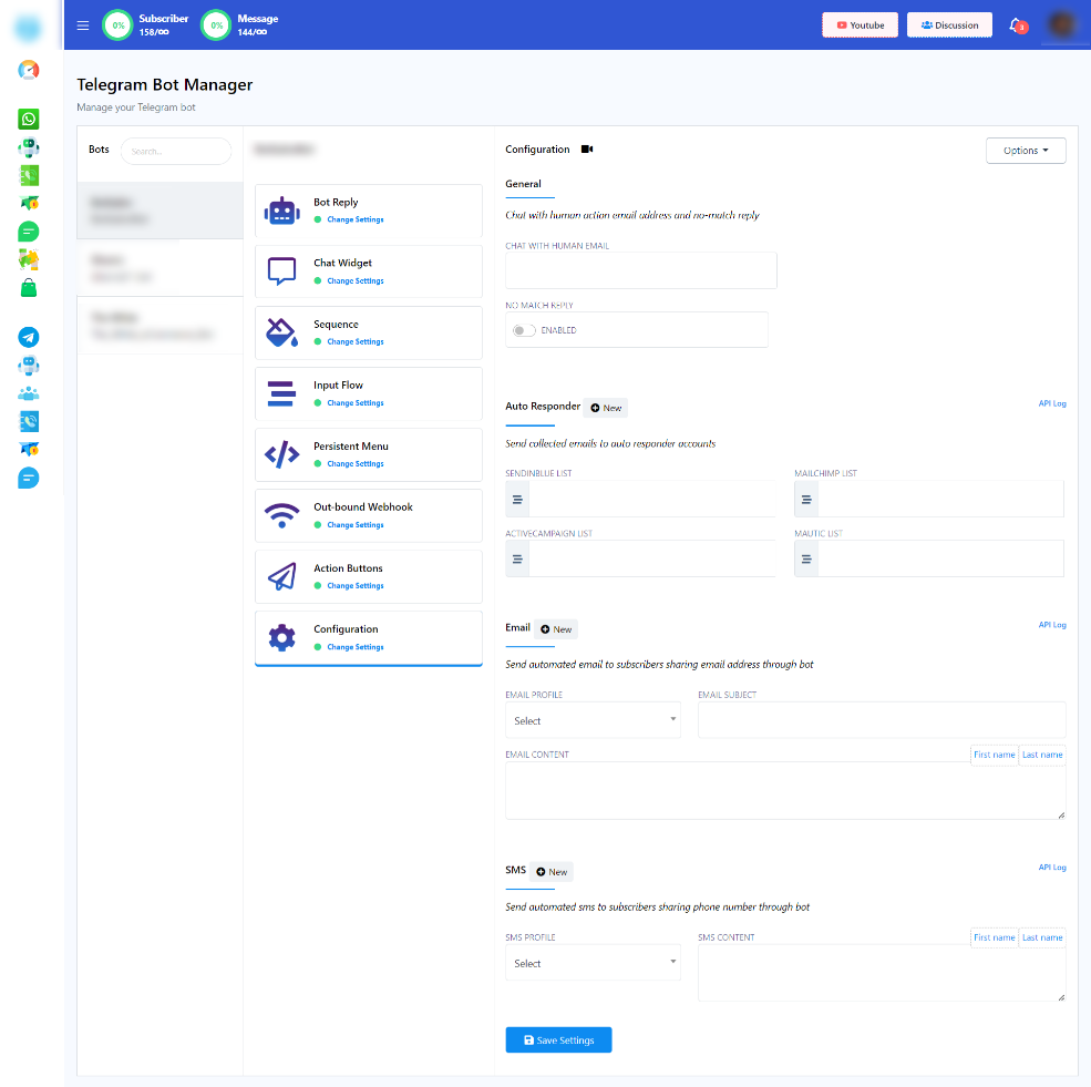 ابدأ بالانتقال إلى صفحة مدير بوت من لوحة المعلومات. انقر على خيار "التكوين".