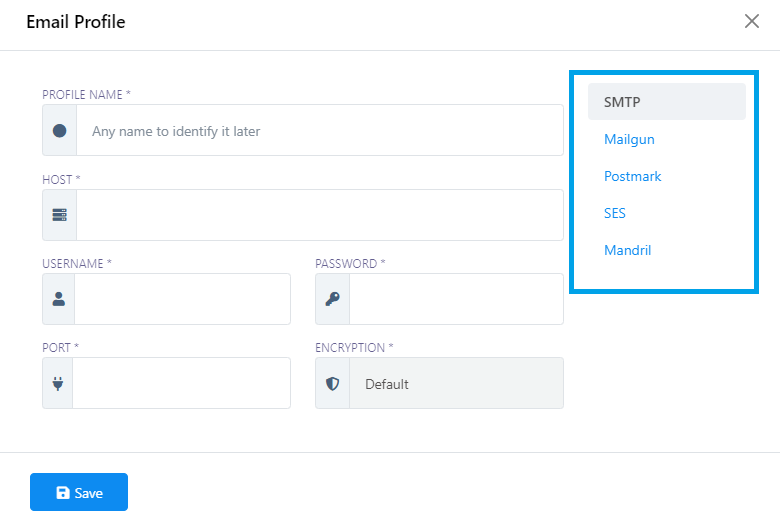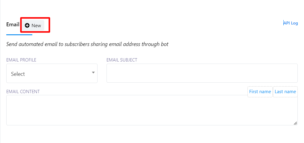 - في هذا القسم، ستجد قائمة منسدلة لملف تعريف البريد الإلكتروني. انقر عليه لتحديد ملف تعريف موجود من الخيارات المتاحة. [قائمة ملف تعريف البريد الإلكتروني].