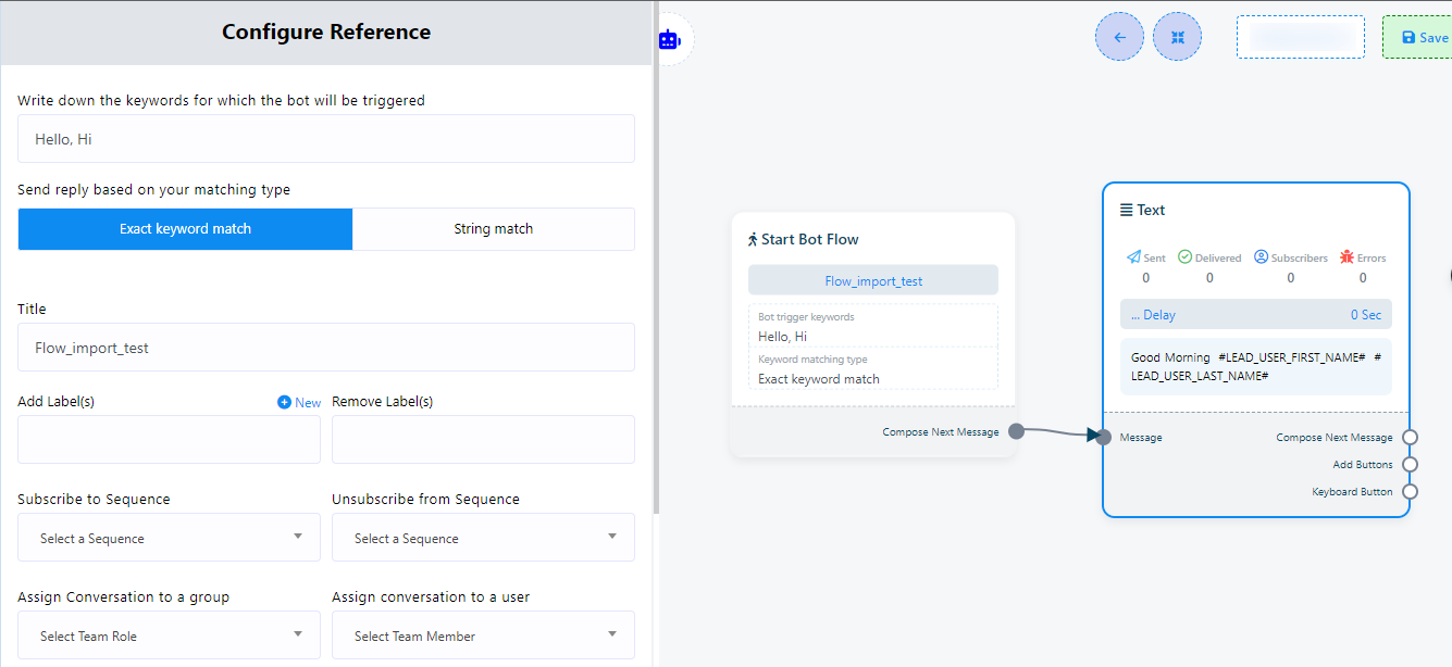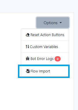 استيراد التدفق: استيراد التدفق، هو العملية النظيرة لتصدير التدفق. يتضمن ذلك أخذ تدفق روبوت محفوظ مسبقًا أو تم إنشاؤه خارجيًا، غالبًا في ملف ".txt" واستيراده إلى أداة إنشاء تدفق الروبوتات. يتيح ذلك للمستخدمين دمج تدفقات المحادثة المحددة مسبقًا وهياكل الروبوتات في مشاريعهم بسرعة دون الحاجة إلى إعادة إنشائها يدويًا. يعمل Flow Import على تبسيط إعداد وتكوين روبوتات الدردشة من خلال دمج تدفقات الروبوت الموجودة مسبقًا.
