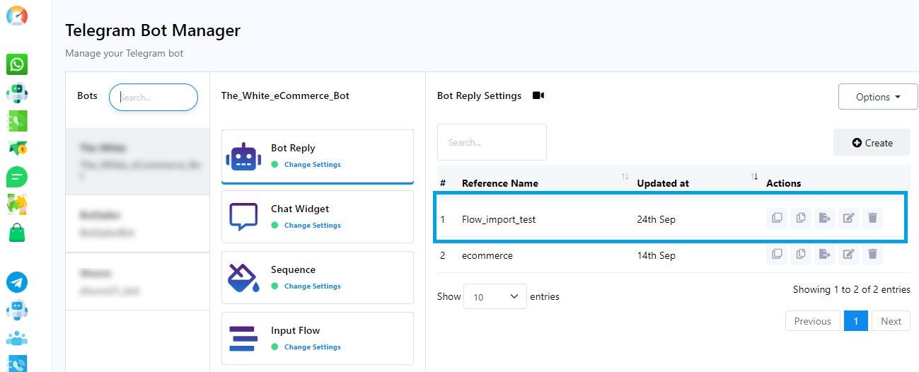 بعد الاستيراد، تحقق من قسم رد الروبوت الخاص بالروبوت المحدد داخل مدير بوت تيليجرام. سيتم تحديث قائمة الروبوتات الخاصة بالمستخدم وفقًا لذلك.