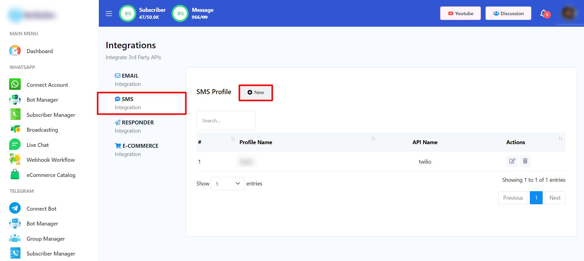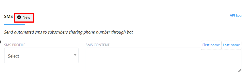 - انقر فوق الزر "جديد" بجوار قسم الرسائل القصيرة. سينقلك هذا إلى تكامل الرسائل القصيرة.