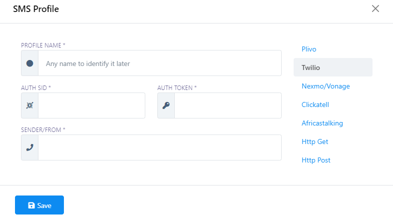 ضمن قسم تكامل الرسائل القصيرة، يتوفر للمستخدمين خيار تكوين رسالة SMS افتراضية. سيتم إرسال هذه الرسالة القصيرة الافتراضية تلقائيًا إلى رقم الهاتف الذي تم جمعه من خلال التفاعلات مع الروبوت. لإعداد تكامل الرسائل القصيرة، يحتاج المستخدمون إلى تحديد ملف تعريف الرسائل القصيرة الذي قاموا بإنشائه مسبقًا في قسم التكامل. يمكن ربط ملفات تعريف الرسائل النصية القصيرة هذه بموفري خدمة إرسال الرسائل النصية القصيرة، بما في ذلك Plivo وTwilio وNexmo/Vonage وClickatell وAfricastalking.