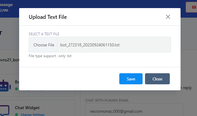 - قم بتحميل ملف bot.txt باستخدام شريط التحميل المتوفر.