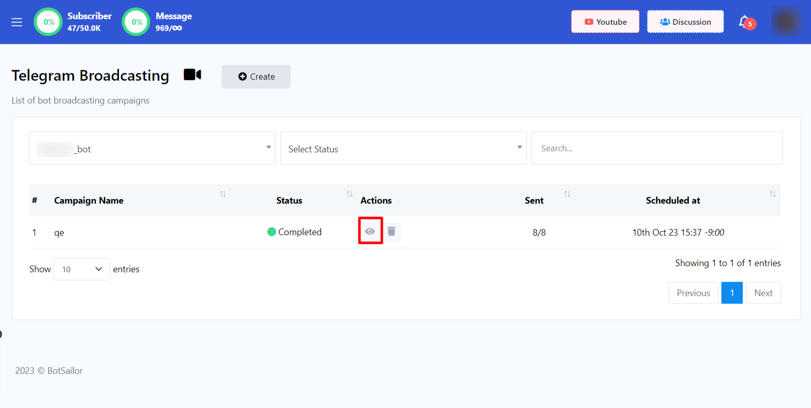 - Go back to `Telegram Broadcasting` page.