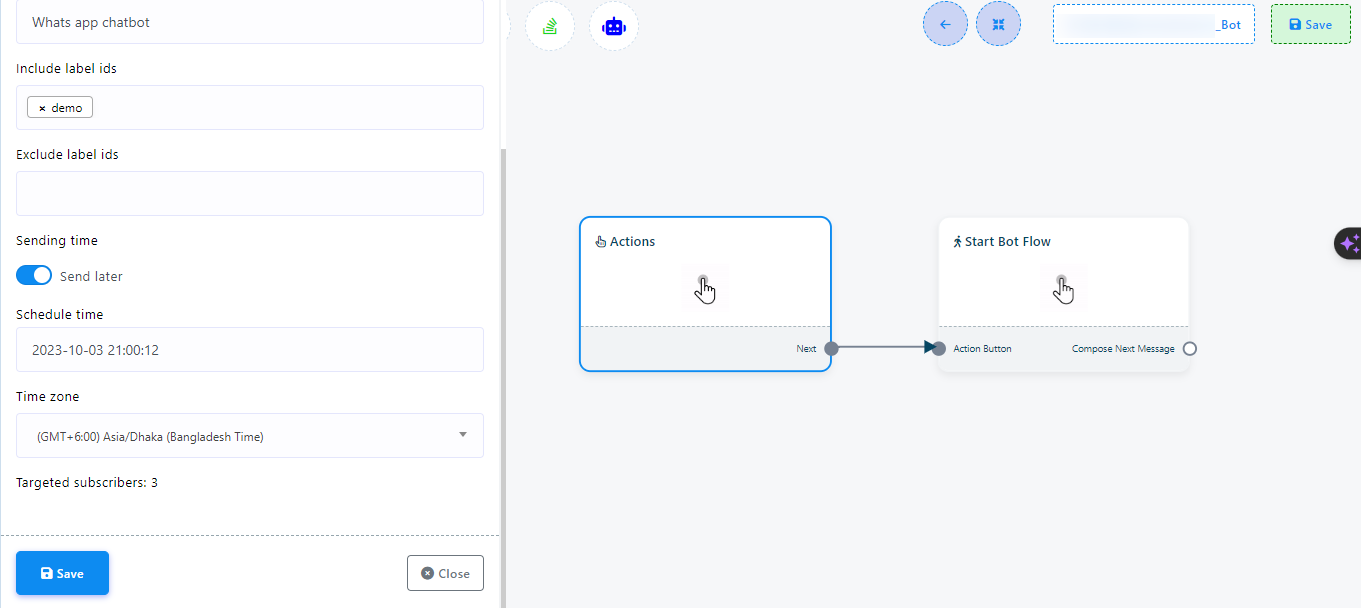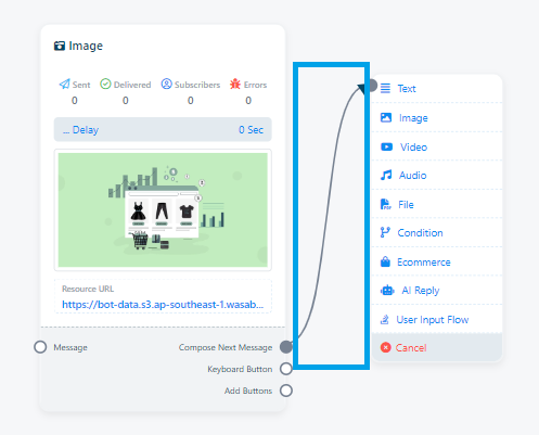 - يمكن للمستخدم سحب وإسقاط أحد المكونات على المحرر من مكون "Start Bot Flow".