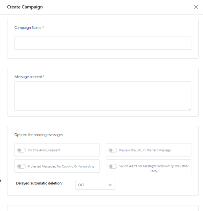 - الحذف التلقائي المؤجل: استخدم هذه القائمة المنبثقة لتحديد تأخير في حذف الرسالة.