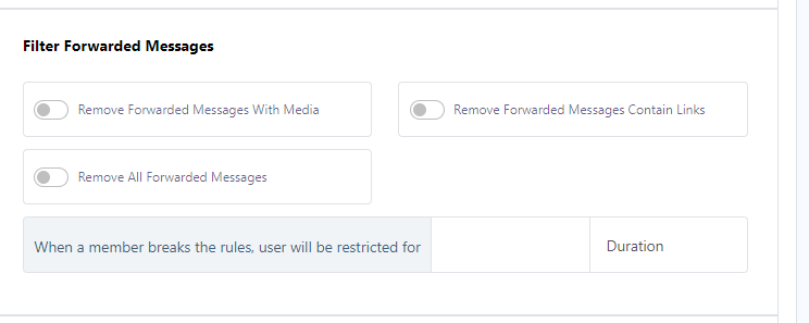بالإضافة إلى ذلك، لديك القدرة على فرض قيود على الأعضاء الذين ينتهكون قواعد المجموعة. عندما ينتهك أحد الأعضاء القواعد، يمكنك اختيار تقييد وصوله لمدة محددة. سيتعامل الروبوت مع هذا الأمر تلقائيًا، مما يضمن التنفيذ السلس لإرشادات المجموعة.