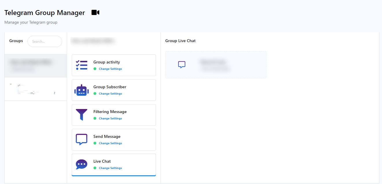 للاستفادة من ميزة الدردشة المباشرة، يجب عليك إنشاء حساب وإنشاء اتصال مع مجموعة تلغرام الخاصة بك. بمجرد إنشاء هذا الاتصال، يمكنك الوصول إلى ميزة الدردشة المباشرة من خلال الانتقال إلى علامة التبويب "الدردشة المباشرة" داخل لوحة التحكم.