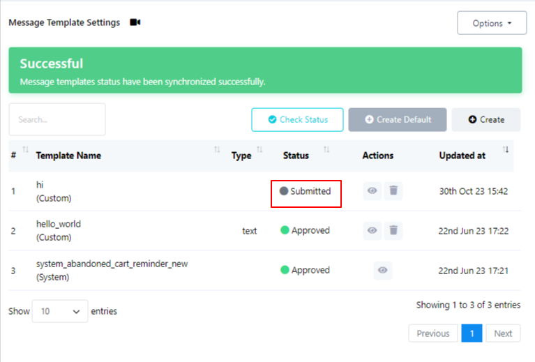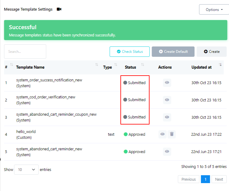 بعد الحفظ، سيتم إدراج القالب الذي تم إنشاؤه حديثًا في قسم القالب، ولكن سيتم وضع علامة على حالته في البداية على أنها "تم الإرسال". يرجى العلم أن الموافقة على القالب قد تتطلب بعض الوقت. بمجرد مراجعة النموذج والموافقة عليه، سيتم تحديث حالته إلى "موافق عليه". ما عليك سوى التحقق من الحالة مرة أخرى لمعرفة ما إذا تمت الموافقة عليها أم لا.