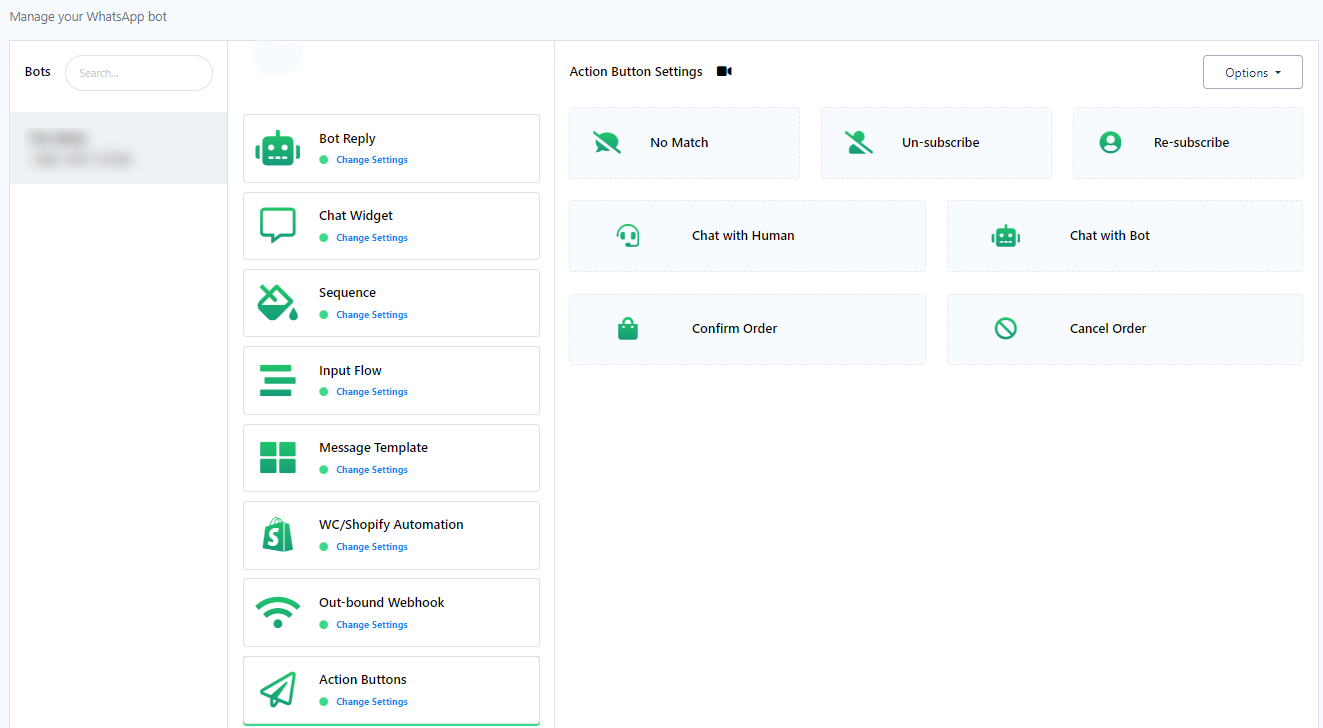 قسم زر الإجراء عبارة عن مجموعة من العناصر القابلة للتخصيص داخل إدارة الواتساب بوتr. تتيح هذه العناصر للمستخدمين تحديد إجراءات أو قوالب معينة يجب على الروبوت تنفيذها عند تنشيطه. إنها تلعب دورًا أساسيًا في تكوين سلوك الروبوت وتدفقه، مما يسمح للمستخدمين بدمج هذه العناصر في أي سير عمل مطلوب للروبوت.
