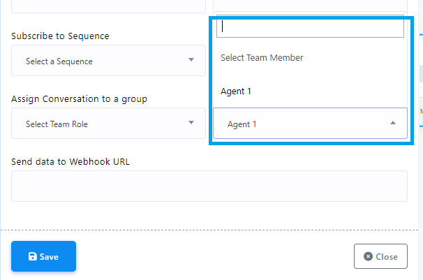 - حدد الوكيل الذي تريد تعيينه للمحادثة.