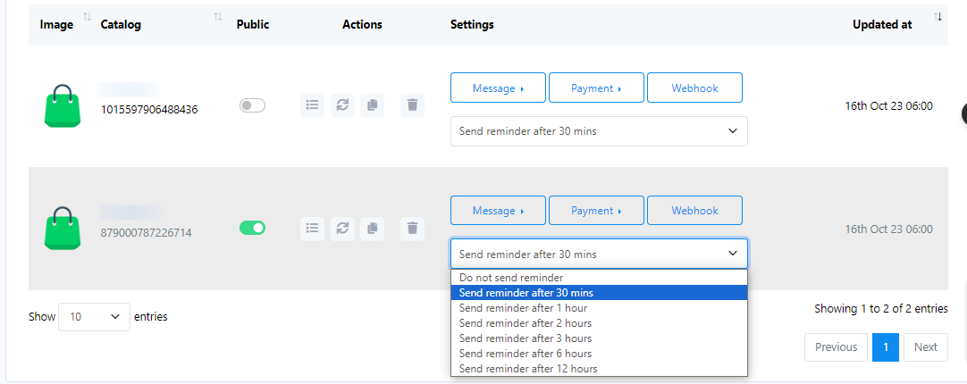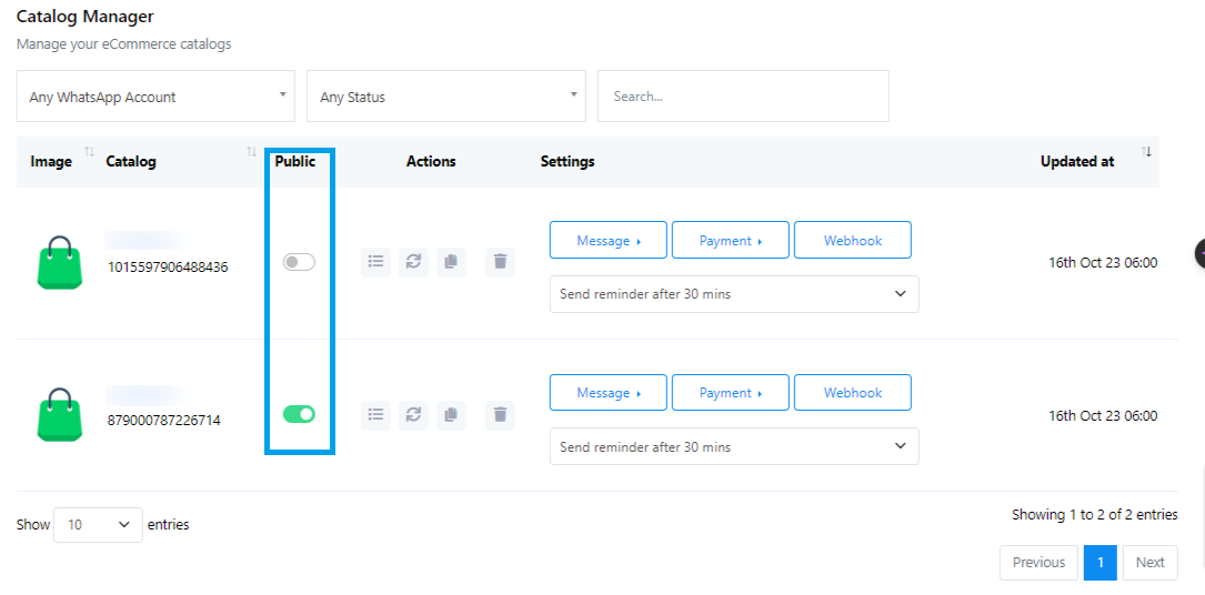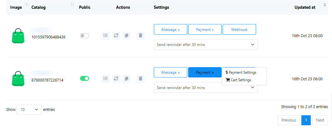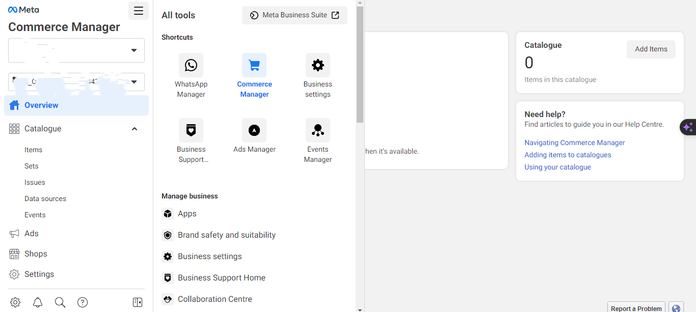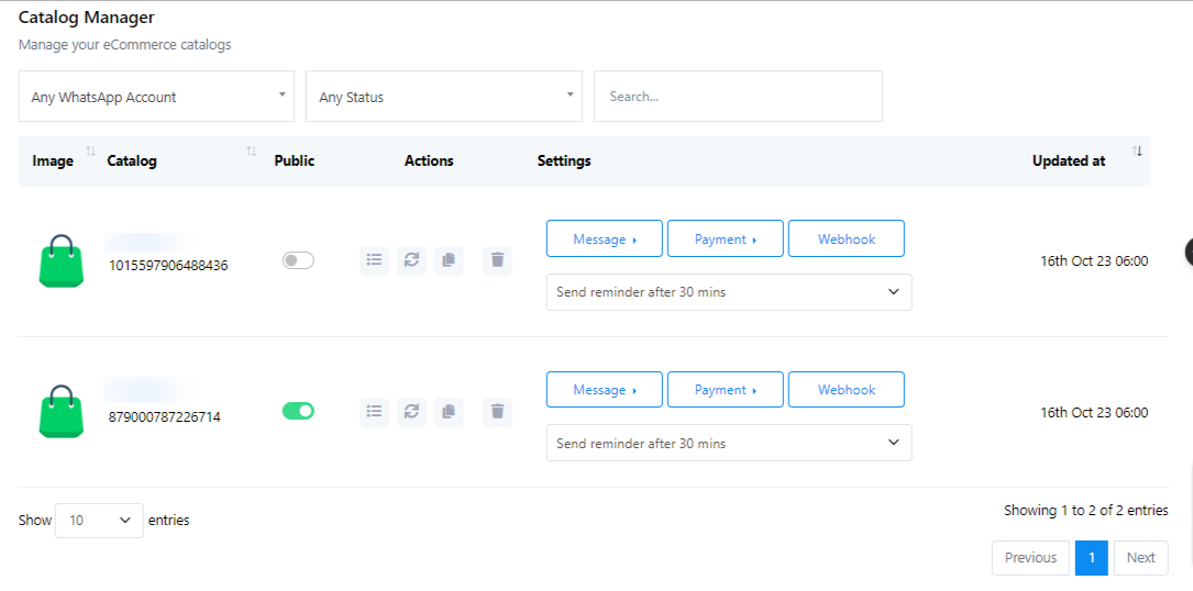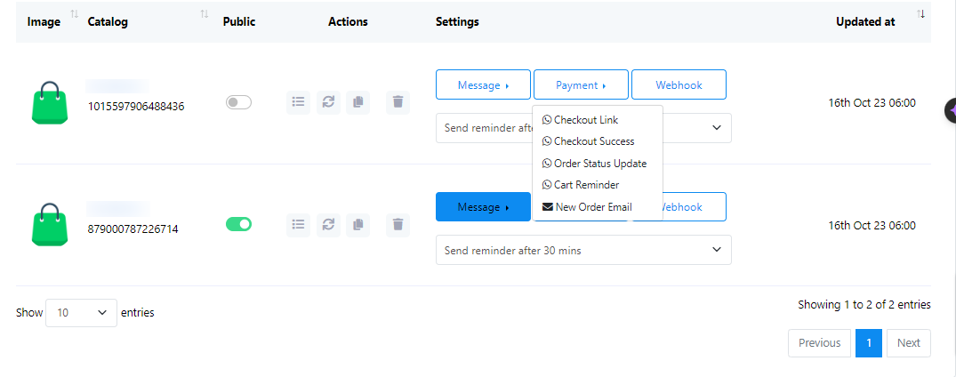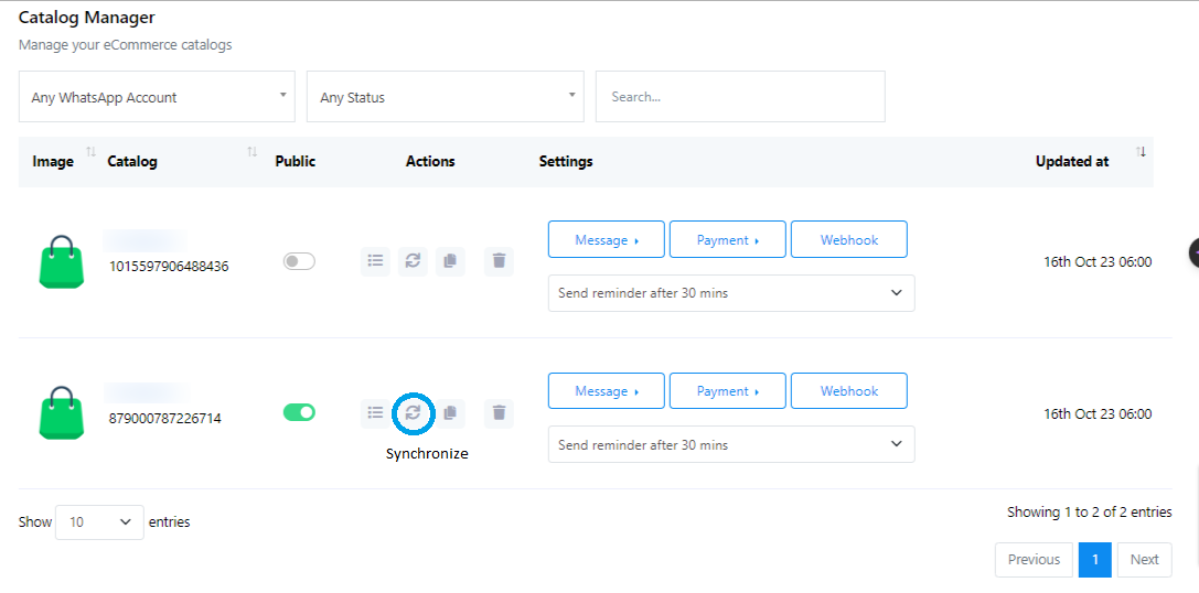 - ضمن "الإجراءات"، يمكنك عرض منتجات الكتالوج. مزامنة أي منتجات مضافة أو محدثة.