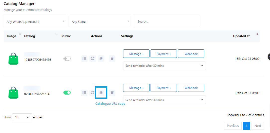 - يمكنك نسخ عنوان URL للكتالوج لمشاركته مع المستخدمين.