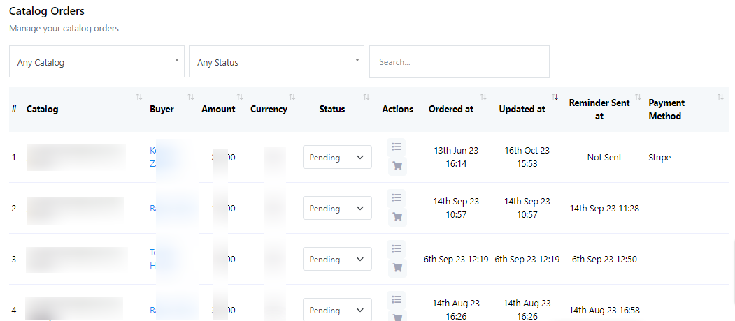 - يمكنك عرض طلبات الكتالوج وتغيير حالة الطلب من "طلب الكتالوج" الموجود أعلى الصفحة.