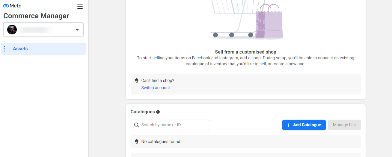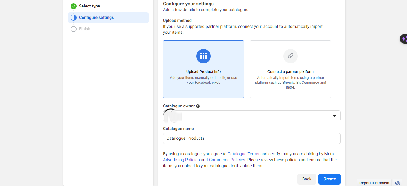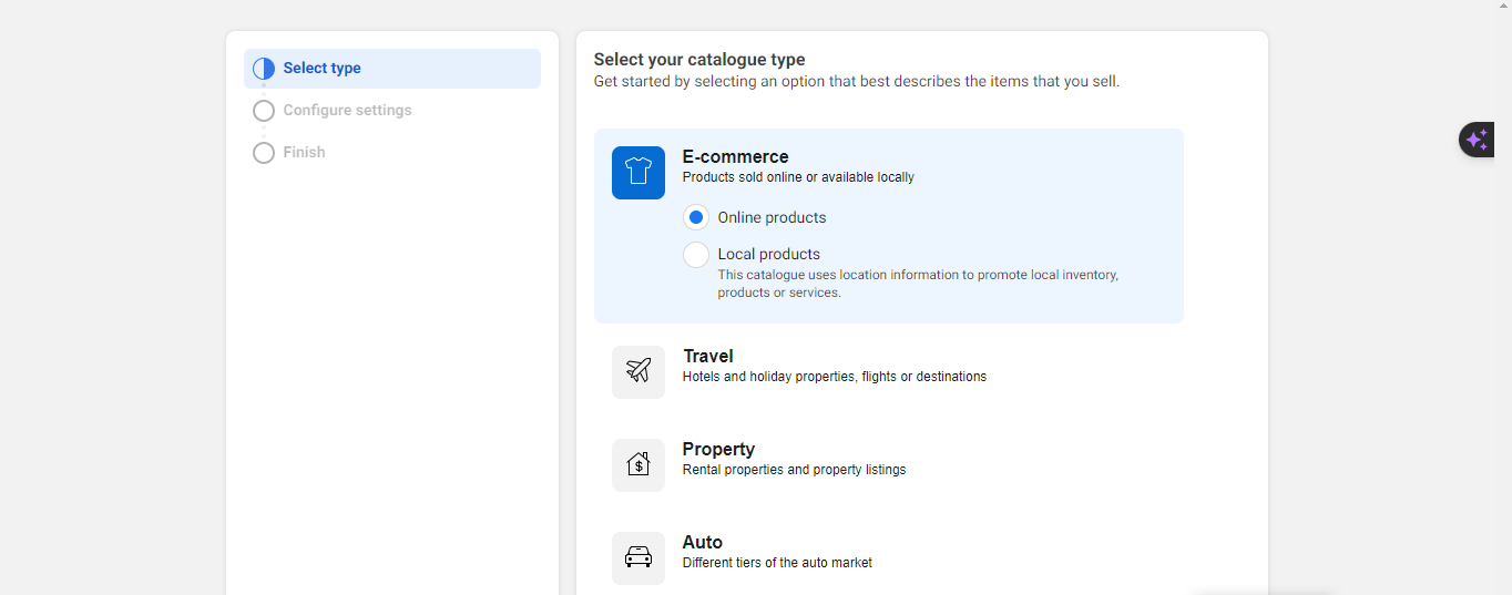 - اختر نوع الكتالوج كـ "التجارة الإلكترونية".